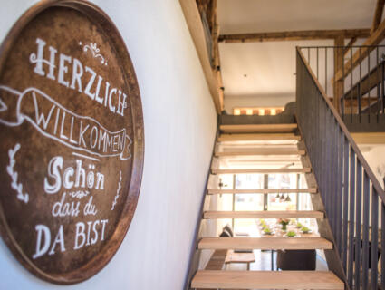 Mittelpunkt des Bauernhaus-Chalet ist die ehemalige Scheune - jetzt ein großzügiger Wohnraum auf zwei Etagen - das zum Verweilen und kochen mit Deinen Lieben einlädt. Im Erdgeschoss befindet sich die vollausgestattete Küche. Ob ihr nun ein einfaches Frühstück oder ein opulentes Abendessen zubereiten möchtet, die Küche bietet euch alles, was ihr braucht. Der große Tisch hat genügend Platz für eine gesellige Runde - hier könnt ihr zusammen essen, lachen und gemeinsam Zeit verbringen.